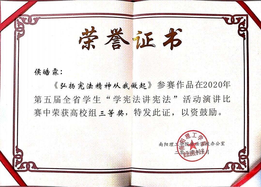 我院学子在2020年第五届全省学生“学宪法讲宪法 活动演讲比赛中获奖