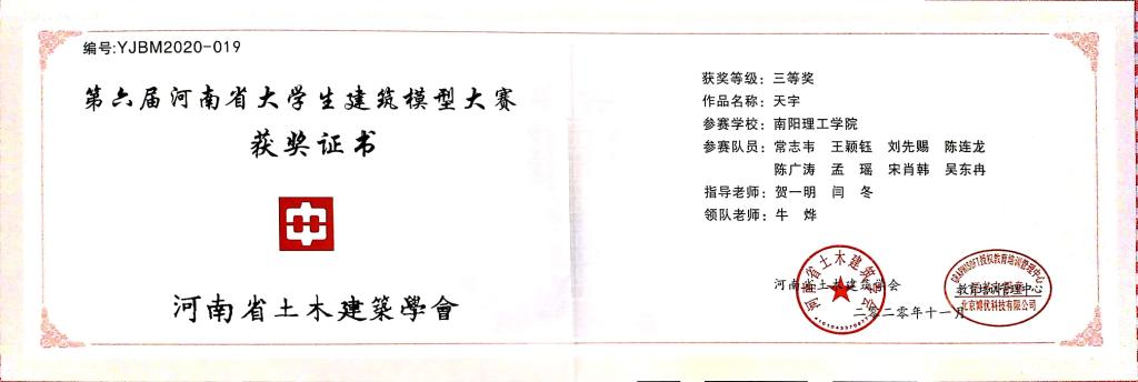 第六届河南省大学生建筑模型大赛获奖证书